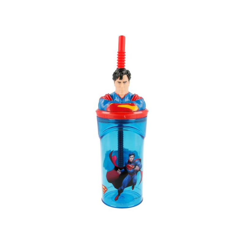 Originale bicchiere per bambini con cannuccia integrata, con decorazioni 3D a forma di testa di alcuni dei più famosi personaggi del cinema.