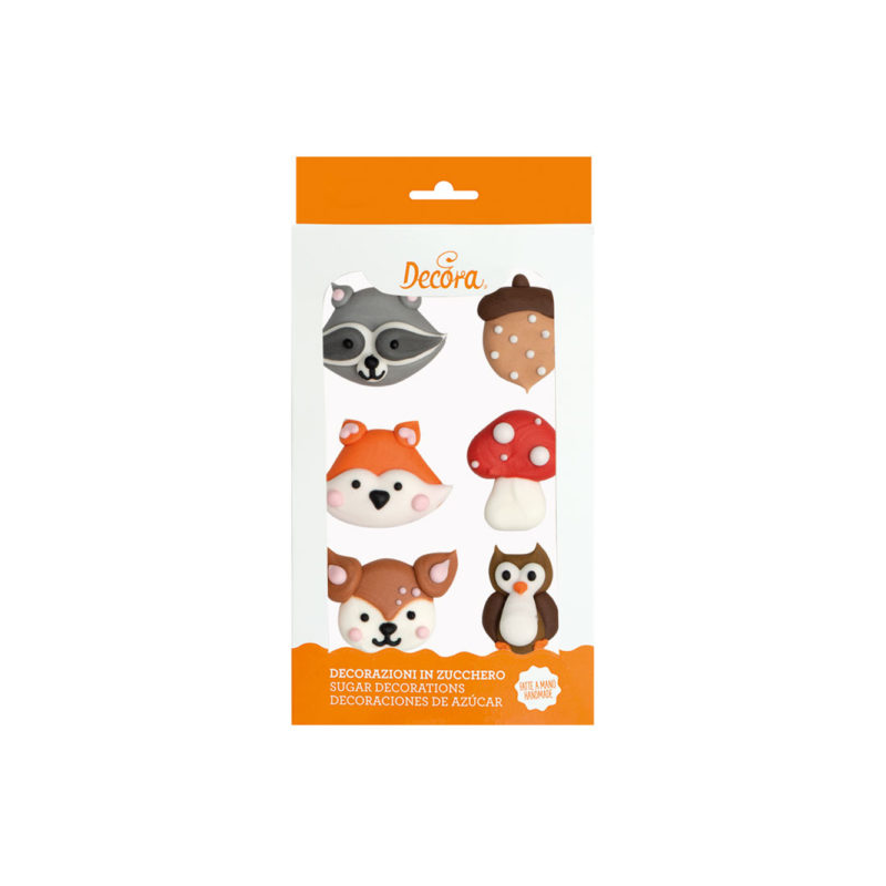 Decorazioni in zucchero, pronte all’uso. Realizzate a mano con coloranti di estrazione naturale. Perfette per decorare facilmente torte, cupcakes, biscotti e dolcetti. Confezione da 6 pezzi assortiti.
