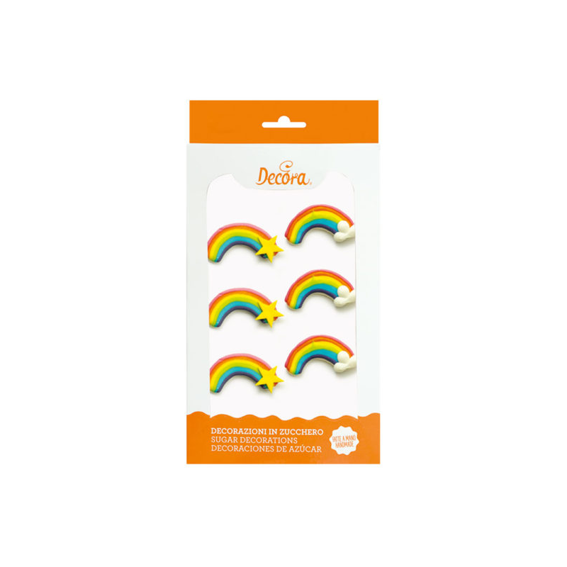 Decorazioni in zucchero, pronte all’uso. Realizzate a mano con coloranti di estrazione naturale. Perfette per decorare facilmente torte, cupcakes, biscotti e dolcetti. Confezione da 6 pezzi assortiti.
