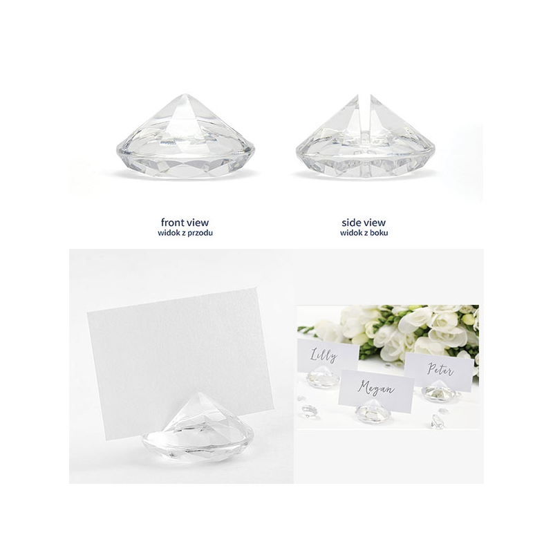 Diamanti in plastica in cui poter inserire cartoncini per rendere i vostri segnaposto ancora più eleganti