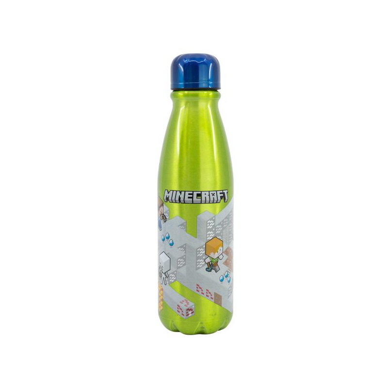 Bottiglia resistente in alluminio, con la quale i bambini potranno bere comodamente e in tutta sicurezza, grazie al suo coperchio di sicurezza e al boccaglio che eviteranno schizzi e fuoriuscite accidentali.