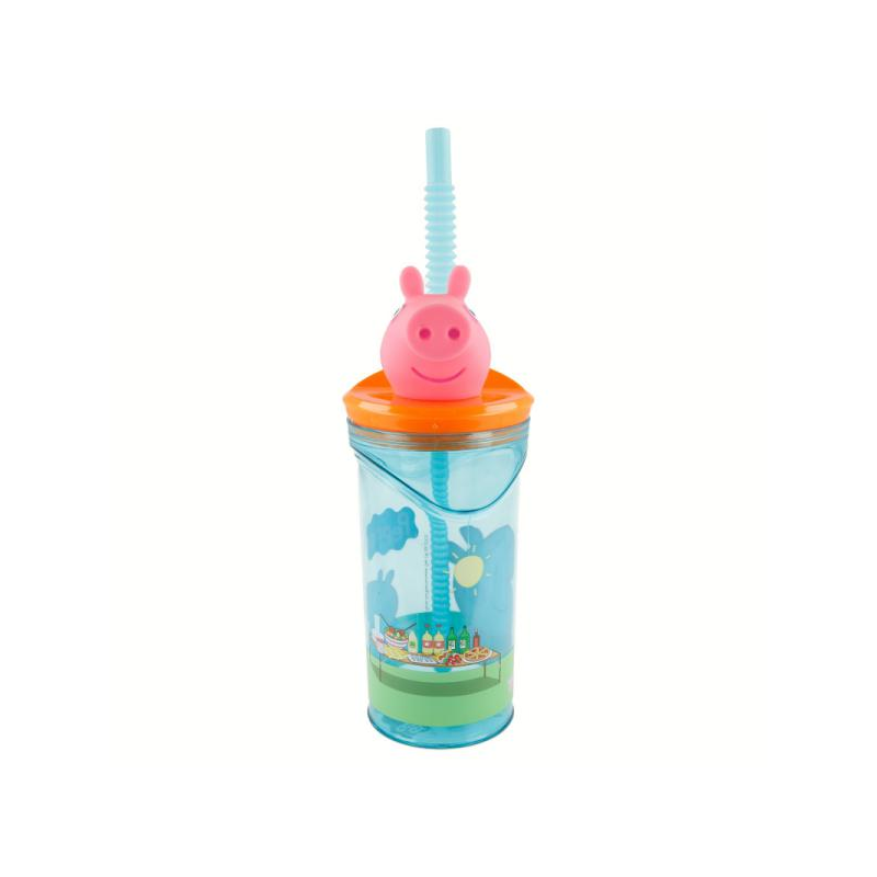Originale bicchiere per bambini con cannuccia integrata, con decorazioni 3D a forma di testa di alcuni dei più famosi personaggi del cinema.