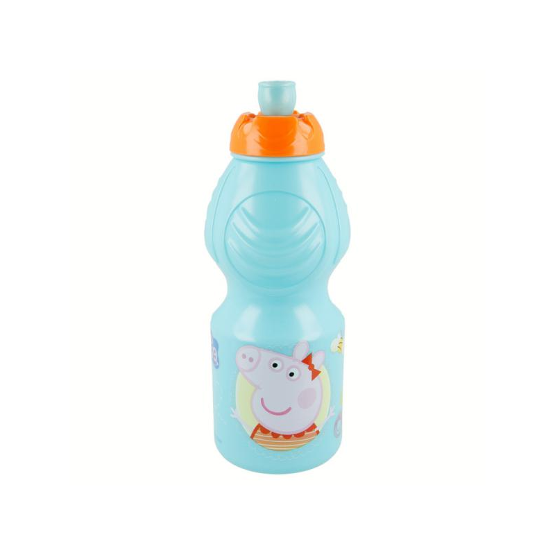 Bottiglia per bambini riutilizzabile che permette al tuo bambino di bere comodamente grazie alla sua forma ergonomica, al tappo antigoccia e alla fascia antiscivolo.