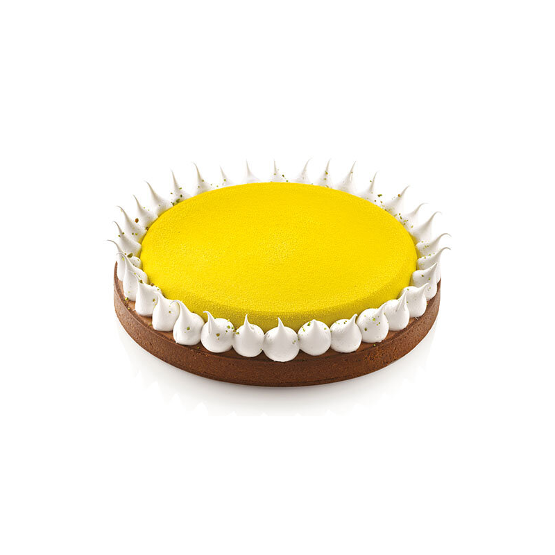 Il kit è composto da due elementi: un anello da 230 mm di diametro in materiale termoplastico composito indeformabile adatto all’uso in forno per la realizzazione della base e uno stampo in silicone da 190 mm di diametro per realizzare una mousse o un cremoso da adagiare sopra alla pasta frolla.
