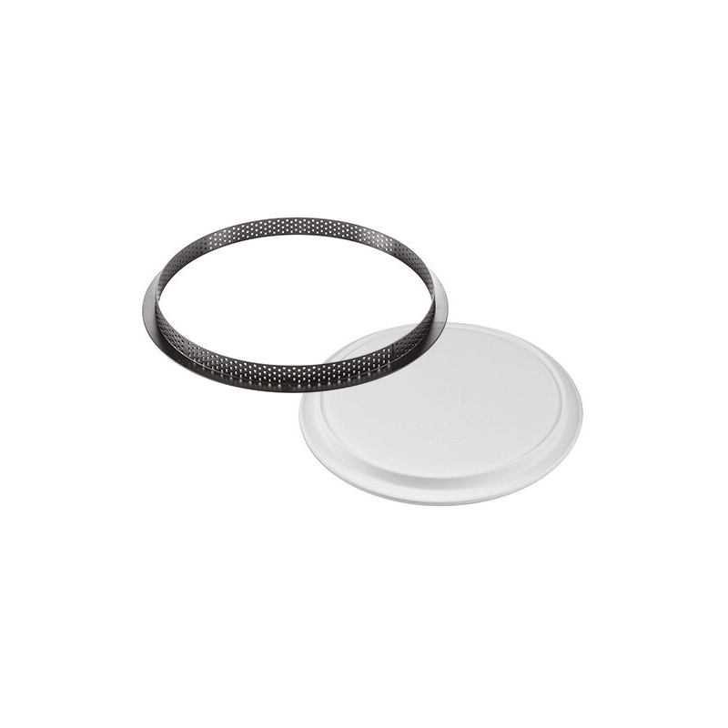 Il kit è composto da due elementi: un anello da 230 mm di diametro in materiale termoplastico composito indeformabile adatto all’uso in forno per la realizzazione della base e uno stampo in silicone da 205 mm di diametro per realizzare una mousse o un cremoso da adagiare sopra alla pasta frolla.