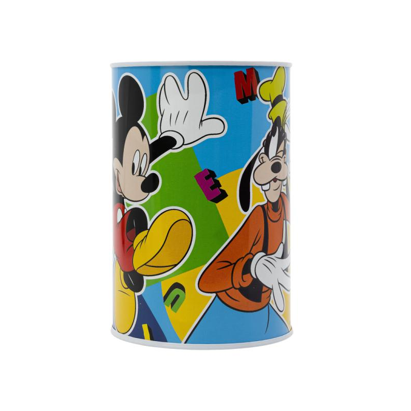 Pratico salvadanaio in metallo per i risparmi dei bambini, decorato con disegni attraenti basati sui personaggi principali delle loro serie preferite.